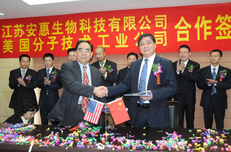 2008年6月17日,安惠公司和美國分子技術工業有限公司簽約,成立南通中美健康產業創新研究有限公司。