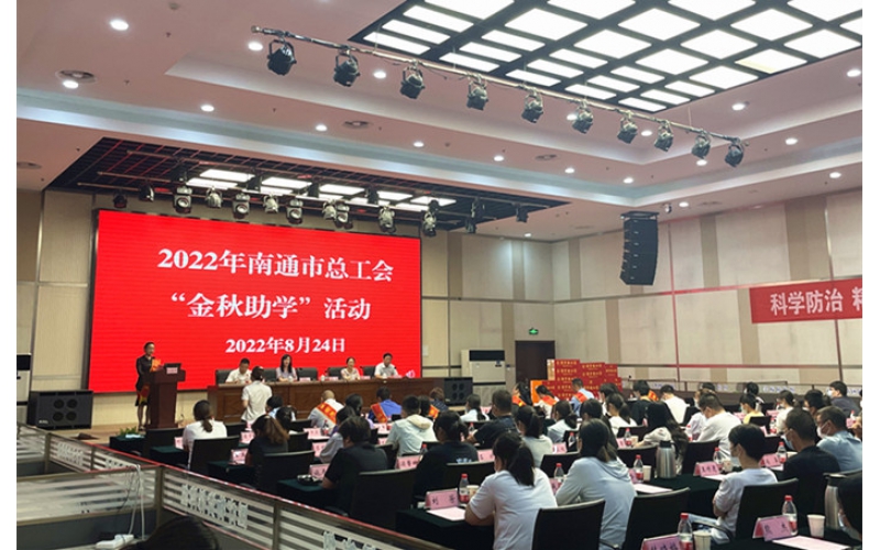 2022年8月24日下午,南通市總工會舉行2022年“工會在身邊·助圓學(xué)子夢”金秋助學(xué)活動,為困難家庭學(xué)生代表發(fā)放金秋助學(xué)金,真情關(guān)心關(guān)愛困難家庭子女,助力渴望求學(xué)的莘莘學(xué)子成才夢想。