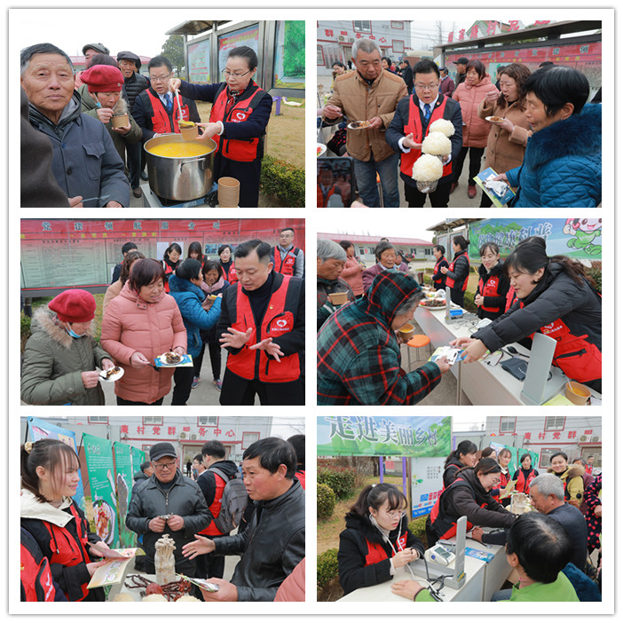 在闞家庵村活動中心,黨總支書記陳忠熱情地接待了安惠江海志愿者一行,并簡要介紹村情。縱有春寒料峭,也抵擋不住大家的熱情,學雷鋒活動吸引了眾多村民前來參加。安惠江海志愿者熱心地為村民們測量血壓,提供健康咨詢。安惠會議中心大廚精心準備了美味的菌菇菜肴:黑椒汁杏鮑菇、糖醋木耳、蛋黃蟹味菇、南瓜茸銀耳,引得村民們連連豎起大拇指:“好吃好吃真好吃!”這些菌菇要怎么烹飪?里面加了什么材料?吃了對人體有什么好處?安惠江海志愿者詳細地為村民們一一解答,并為他們普及“一葷一素一菇”的健康飲食理念。